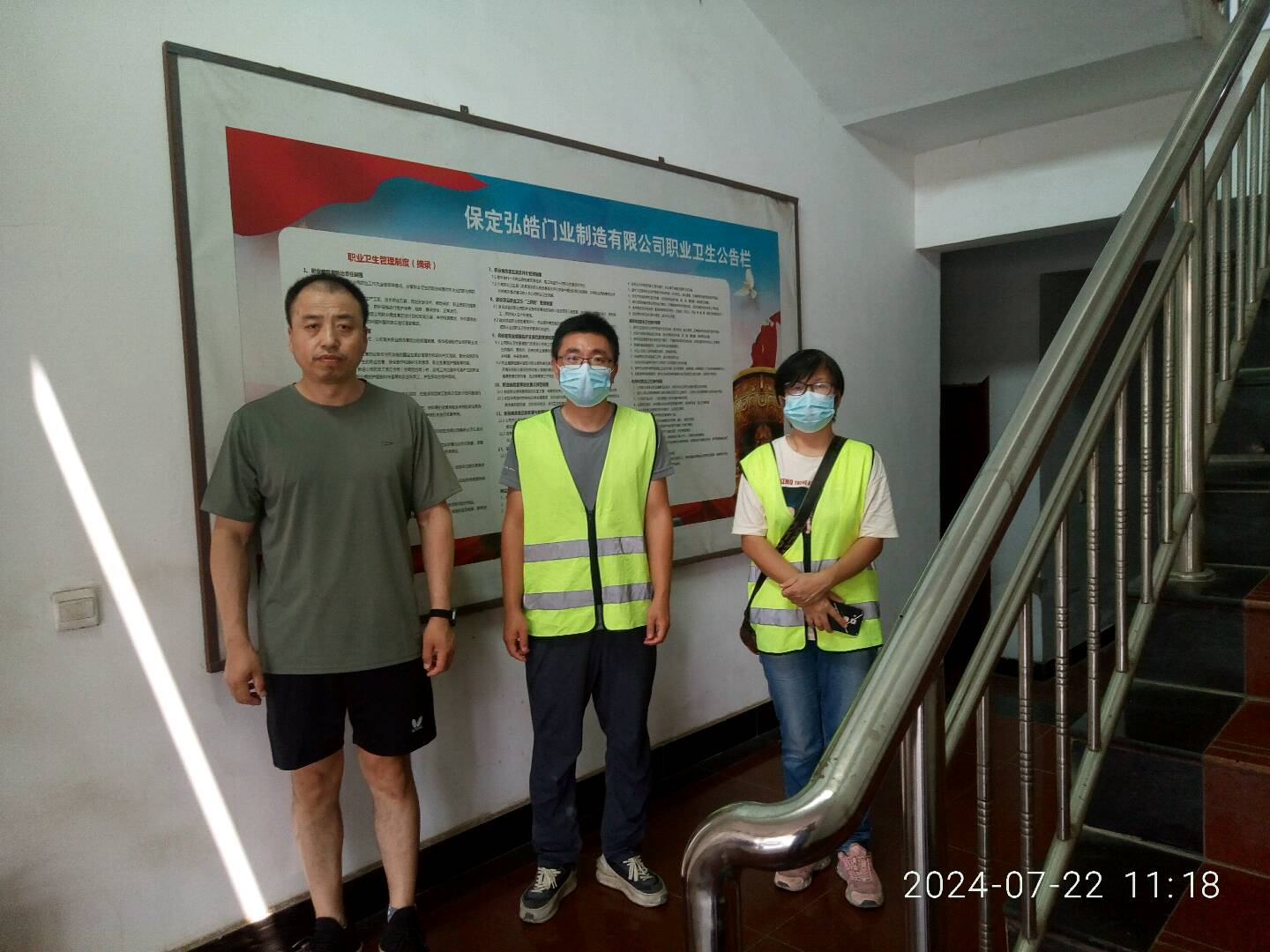 | 现场采样检测人员 | 陈立红、王磊 | 用人单位陪同人 | 史云飞 | 时间 | 2024-07-22-2024-07-24 |